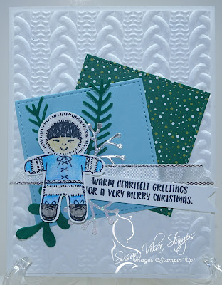 The Eskimo features one of the new watercolor pencils, Balmy Blue. I used both Pacific Point and Balmy Blue to get shadows and gradients in the Eskimo's snow suit. I'm sorry you can't see it, but all the white on his little suit is covered in Wink of Stella for lots of sparkle.